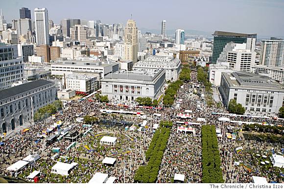 こちらはサンフランシスコのプライドです。サンフランシスコは04年に市として同性婚を認めようとして当時の州最高裁に差し止められた経緯があります。そのときのギャヴィン・ニューソム市長ももちろんフィアンセとともにマーチに登場しました。彼はシュワルツェネッガーの後でやはり州知事選挙に立候補するかもしれません。